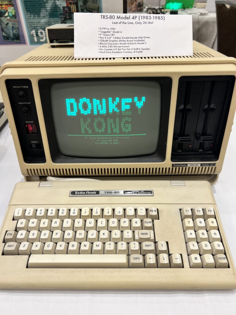 But the fun of the experience is getting to take a look at classic machines, well-loved and honored, as well as some hilarious experiments that make you giggle. Case in point, a beautiful TRS-80 Model 4P, taking me back to my father’s numerous hours spent writing on his upgraded unit, pictured below. Also, pictured below – a husk of an Apple Lisa that someone popped a Mac Mini G4 board in. Cute!